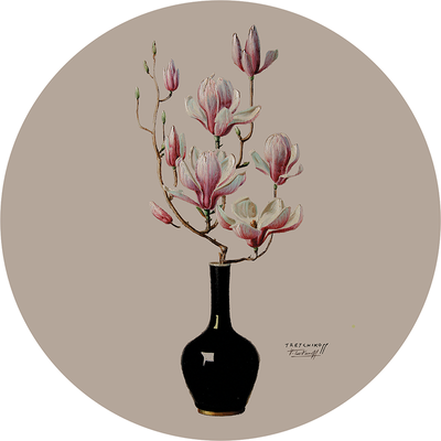 Pink Magnolias in Black Vase Muurcirkel