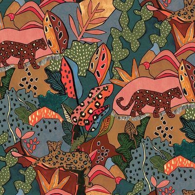 Design Team creëert feel-good bedrukte stoffen, geïnspireerd door de natuur en het dagelijkse leven op het Afrikaanse continent. Katoenen en linnen basisdoeken worden op maat geverfd tot een uniek kleurenpalet en het bedrukken gebeurt met de hand met behulp van vlakbedzeefdruktechnieken. Bestel nu en breng je muren tot leven!